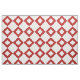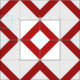 A bold, geometric pattern of interlocking red and white diamond shapes. The red diamonds each contain a small white diamond making white (or the colour of the fabric) the dominant colour of the fabric design.