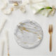 Geometric White Grey Carrara Gold Marble Paper Plate