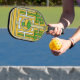 Geometric Yellow and Green Abstract Maze Design Pickleball Paddle