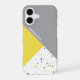 Geometric Yellow Grey Terrazzo Pattern with Name iPhone 16 Case