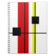 Modern art abstract geometrical design with black, red, yellow lines and black squares on white background