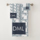 Geometrical Texture Warm Blue Tones Pattern Bath Towel Set