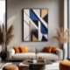 Lines and shapes intertwine in a precise play of neutral colours and shades of blue, creating balance between order and abstraction. The artwork conveys sophistication, modernity, and contemplation, as if each angle reveals a new path for the eye.