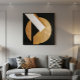 An abstract composition merging a golden circle, dark triangle, and white stripe in elegant contrast. The artwork conveys balance between strength and subtlety, exploring the dialogue of geometric forms, light, and shadow, evoking modernity and timeless sophistication.