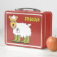 This is a standard metal lunchbox that appears to work just fine. We designed this box ourselves with an uploaded photo and custom text on the front and back. It looks absolutely beautiful except the front of the lunchbox is not centered like it shows in the photo. The print borders don't align with the inset flat part of the box where the preview photo online showed it perfectly centered in there. The back looks nice and centered though.