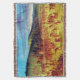 A quality printed throw has its advantages. This is a much finer weave throw than its loopier cousins, and though lighter, it is worth the investment for custom room accessorizing. The back is much prettier than the typical brown, and the fringe on the long sides very vivid, the selvage nicely done. Before photographing, I washed the throw in cold water, delicate, with a thicker woven throw the same size. On tumble dry low, this throw was dry in half the time as the other. This is a very practical quality if you use throws for furniture covers or to wrap up in frequently. The sleekness of the fabric makes it a great layer for accenting or protecting without the feeling of sitting on too much stuff. Perfect for napping or when you feel a light chill coming on. The color printing is beautiful and on this fabric, matched the design and color of my Photoshop image. This is an advantage for blending room fabrics and colors. The fringe on the short sides prints the colors from the design image and therefore varies from the side fringe. I streaked a white fractal line through the plaid pattern to give the illusion of weaving. This printed as crisp as an illusory thread, and put some white in the short side fringe, showing another advantage of print vs loomed- for artistic purposes, line lines, detail, and color integrity can be planned and preserved. My loomed throws have color limitations and more of a needlepoint texture. Print throws reproduce an exact image. The throw felt a little stiff straight out of the package, but this went away in the first delicate wash. Of course I searched the wash water for ink or bleeding and there was none.