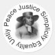 A Quaker, George Fox, is in the centre with the words Justice, Simplicity, Equality, Unity, Peace are written in a circle around George Fox.