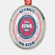 Show your state pride this holiday season with this unique Christmas ornament dedicated to Georgia, the 4th state. It has red, white, and blue patriotic colours with a circular typography design on a white background. The text includes facts about the state, such as its name, capital, state abbreviation, region, time zone, geographic coordinates, the year of its statehood, and its resident's name. It's a great gift for those who wish to celebrate their state or for those who are feeling nostalgic about their home state.