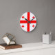 The clock did not take as long to arrive as I thought it might and was extremely well packaged. I didn't do the measurements so I didn't realize it is a little smaller than the average clock but that does not matter (just make sure you check if that's important to you).It is really nifty! It seems very solid and well made not flimsy at all. It has been going well and has kept good time in its few weeks on my wall. Nice product. Gets noticed too! Nicer in real life than the picture but true to the picture