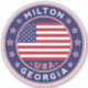 Milton sticker with American flag colours rounded shape.