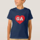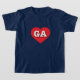 This t-shirt features a vibrant red heart containing the bold, white, upper case letters GA, the official abbreviation for Georgia state, the peach state.