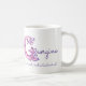 Decorated hand drawn letter with your own name beginning with G and name meaning mug. Pretty heart and flower capital G doodled typographic design featuring hearts and flowers and the words Georgina Down to earth, kind in heart and soul in pink and purple. © Unique art and design by Sarah Trett. www.sarahtrett.com for www.mylittleeden.com on zazzle