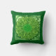 Throw pillow in a print of a Gerbera daisy digitally transformed and hand tinted - shades of lime green accented with pale yellow and bordered in dark green