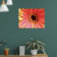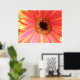 This beautiful print features a detailed photograph of a stunning orange and red Gerbera Daisy. The photograph was taken using macro photography and shows the delicate beauty of this much-loved garden flower.