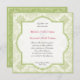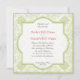 This vintage inspired wedding collection has a complete ensemble of products. This design consists of a detailed vintage carved etching pattern that has been made into the background. It has a toile damask feel to it. The gentle lime green border on a quatrafoil central design and outer edging give it a contemporary essensce and unpredictability. The artwork was painted in antiquity and rearranged into a pleasing colour palette and layout. The reverse side is a deeper blue version of the same pattern with the Bride and Groom's initials.