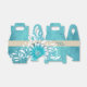 This pretty gable-style favour box features a teal and white Gerbera Daisy with elegant white scroll flourishes & an oatmeal-coloured band. Use the "Customise It" button to personalise with your own text. If you need help, please contact me BEFORE you place your order. Email: cheryl@glamprettyweddings.com/contact. Matching invitations, save the dates, paper cocktail napkins. other favour box shapes and many other products available. Comes in 5 colours: red/burgundy, yellow/chalkboard, teal/oatmeal, fuschia/chalkboard and orange/turquoise. "Gerbera Daisy Scroll" original design by Cheryl Daniels © 2014.