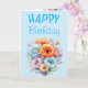 Gerbera flowers happy birthday blank blue card