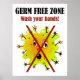 Germ Free Zone. Wash your hands! Poster