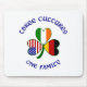 Beautiful design for St. Patrick's Day or anytime, features a shamrock flag with heart-shaped leaves. Each leaf has a flag: USA, Ireland, or Germany. Reads, "three cultures one family", allowing you to honour, with pride and love, all your German, American & Irish ancestries, heritages and cultures. Fun at family events, too.