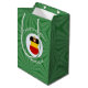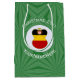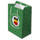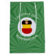 Medium gift bag with an angel wearing the flag of Germany for holiday gift decorating or Christmas decor. The angel is found inside a white circular fractal of squiggly squares. The background is a green fractal of squiggly squares. Add your own text or personalise with a name and the year. Share your German heritage this holiday season.