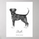 Destei's original black and white colour illustration of a cute German Boxer breed dog drawn in digital ink wash style. There are also two personalizable text areas under the image.