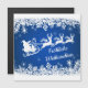 White snowflakes, Santa Claus with his sleigh and reindeer on a blue wintry background. The German text says: Merry Christmas.