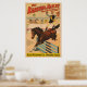 Vintage Barnum & Bailey German circus poster showing a man standing on horse bareback, circa 1900.