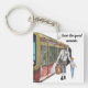 A trip to town shows a traditional German wood elf father coming back from a shopping trip with his elfin daughter who has embraced modern ways. Painted with acrylics on canvas this fantasy image shows an elvish father in traditional German lederhosen and his daughter wearing modern clothing walking along a train depot returning from a shopping trip. The fantasy image illustrates the transition from the older traditions or ideas to more current or modern ones by the younger generation, something many parents have experienced. A gift of this fantasy art acrylic keychain would be perfect for anyone who has experienced the transition from past ideas to newer ones.