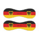 Design with variant flag of Federal republic of Germany with horizontal stripes of black, red and yellow; with coat of arms with an eagle