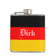 German Flag Custom Flask: Show your pride for Germany or make a special gift for your German friend. To personalise the flask, type any name into the text box.
