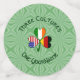 Personalised party confetti shows the flags of Germany, Ireland, and United States of America (USA) in the leaves of a shamrock, designed to celebrate St. Patrick's Day, 4th of July, and Octoberfest. It sits on a fractal background of light green squiggly squares. Above are the words THREE CULTURES. Below, ONE YOURNAME. Words are in dark green, Celtic style, circular letters. Add a name in the appropriate place for a personalised look. Fun addition to your St. Patrick's Day party.