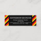 This business card design could be used by a professional such as a German language teacher, German instructor, German language expert, or German language tutor. The name, profession and contact details can be personalised. It also features black, red and yellow stripes, inspired by the colours of the German national flag.
