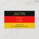 A stylish modern business card suitable for a freelance German language tutor or teacher. This design features a German flag symbol and can be customised with your own personal details. Black, red and yellow colours to represent Germany.
