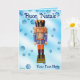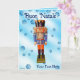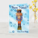 A traditional German wood nutcracker depicting a military officer with a blue and orange uniform. The nutcracker is superimposed on a blue background image with snowflakes. Italian text reading "Buon Natale" (Merry Christmas) also appears. Add your own additional text.