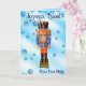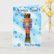 A traditional German wood nutcracker depicting a military officer with a blue and orange uniform. The nutcracker is superimposed on a blue background image with snowflakes. French text reading "Joyeux Noël" (Merry Christmas) also appears. Add your own additional text.