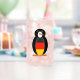 Beer or can glass shows charming Ms. Penguin with a vest in the colours of the German flag or flag of Germany. Looks lovely. Fun housewarming gift for the home bar. Fun on Penguin Awareness Day, too.