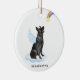 Celebrate your best friend with a custom German Shepherd angel memorial ornament. This German Shepherd christmas memorial ornament features a watercolor German Shepherd dog with angel wings and a rainbow and shooting gold star. Personalise with name front, dates back . This German Shepherd memorial ornament is a perfect dog remembrance keepsake or pet christmas memorial keepsake. COPYRIGHT © 2022 Judy Burrows, Black Dog Art - All Rights Reserved. German Shepherd Angel Personalised Dog Memorial Ceramic Ornament