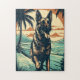 German Shepherd at a tropical beach during sunset Jigsaw Puzzle