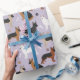 Cute German Shepherds in black and tan, black and red, black and silver, white and back colour coats sit and stand with scattered dog bones and paw prints on a light purple background.