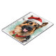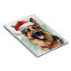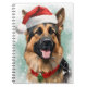 Colourful and joyful Christmas design with a German Shepherd wearing a Santa hat.