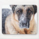German Shepherd Closeup Covered In Snow Mouse Pad