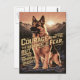 A German Shepherd stands proudly on a rocky outcrop, looking towards the setting sun. The words Courage is not the absence of fear, but the triumph over it are superimposed on the image.