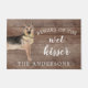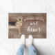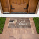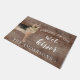 Funny beware of the wet kisser" German Shepherd Dog door mat set on a rustic faux background. Visit our shop to view a large assortment of dog breads