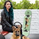 A cool canine themed skateboard for dog lovers, with a picture of a German Shepherd dog on a light green background. Personalise with the recipient's initial as a monogram for the finishing touch.