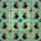 A German Shepherd Dog portrait against a blue-green background with a scattering of bones and paw tracks. This design is intended to tile seamlessly.