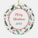 On the front of this Holiday ornament is a beautiful portrait of a German Shepherd Dog. The portrait is placed within a pretty green holly leaf and red berry pattern circular frame. The back of the ornament has the same background and circle with your custom text in matching red and green.