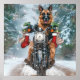 German Shepherd Dog Riding Motorcycle Christmas Poster