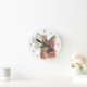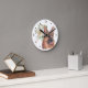 A watercolor portrait of a beautiful German Shepherd Dog is in front of a white rose bouquet on this clock. The bouquet and dog image have an overlay swirl of faux glitter Dark gold numbers and diamond shaped markers around the perimeter make the clock easy to read. Perfect for anyone who has lost their heart to a GSD.