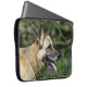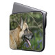 This laptop sleeve looks exactly as it does in picture. I actually thought is was too small until I put my laptop in it. It's a bit snug, but it fits. Figure it will stretch a bit, hopefully seams hold. Them seem good for now. I didn't have any personalization done, looks great as is.