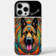 A German Shepherd's head is depicted in a colourful mandala, with intricate details and vibrant colours.